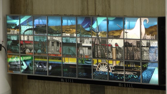 Hey! One more piece of art you missed from the McGill Métro station: the urban relief map of Montréal behind a wall of glass bricks just to the left of the entrance into Les Aiules de la Mode (former Eaton store).