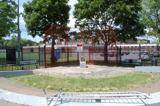 Back in May I published some photos of the Jackie Robinson Statue by Jules Lasalle at the Olympic Stadium. Well this is where it was originally, on the corner of de Lorimier and Ontario streets.